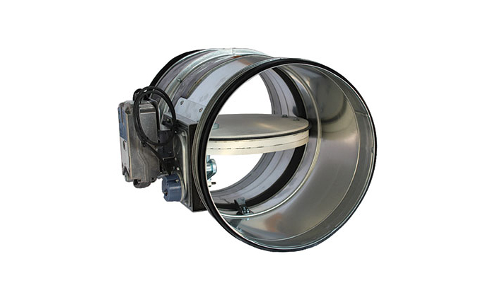Circular fire damper for air duct system that penetrate fire resistance walls or floors. With 40 mm thick closing blade made from refractory material. Casing leakage performance class C according to Standard EN1751:2014 section C.3.